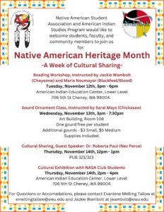 Location: American Indian Education Center, Lower Level | 706 5th St. Cheney, WA 99004